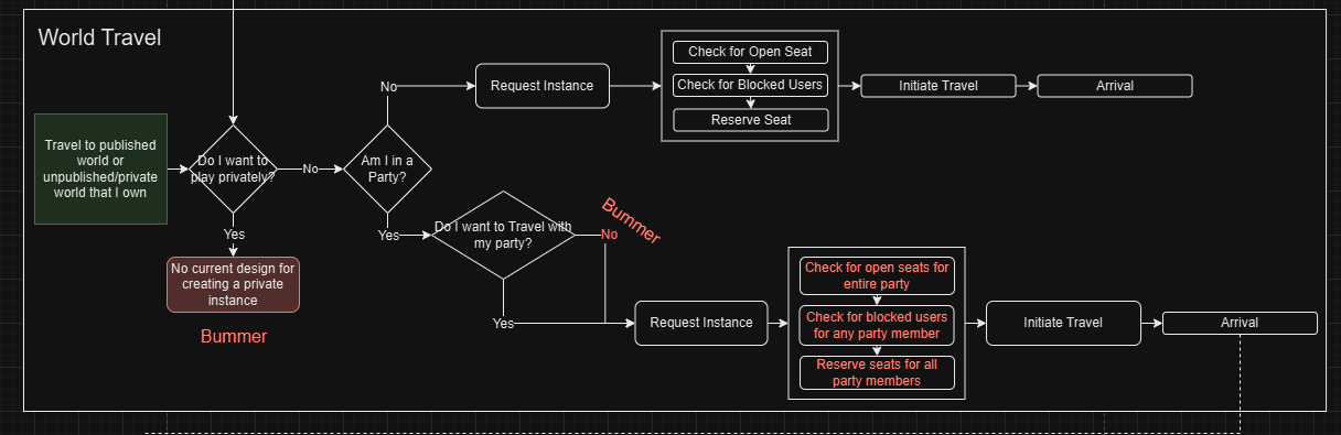 I collaborated with the server team to analyze the travel system and identified missing system diagrams. I created detailed diagrams and player decision trees, uncovering that travel failures were caused by uncoordinated player requests overloading servers and misordered travel checks.
